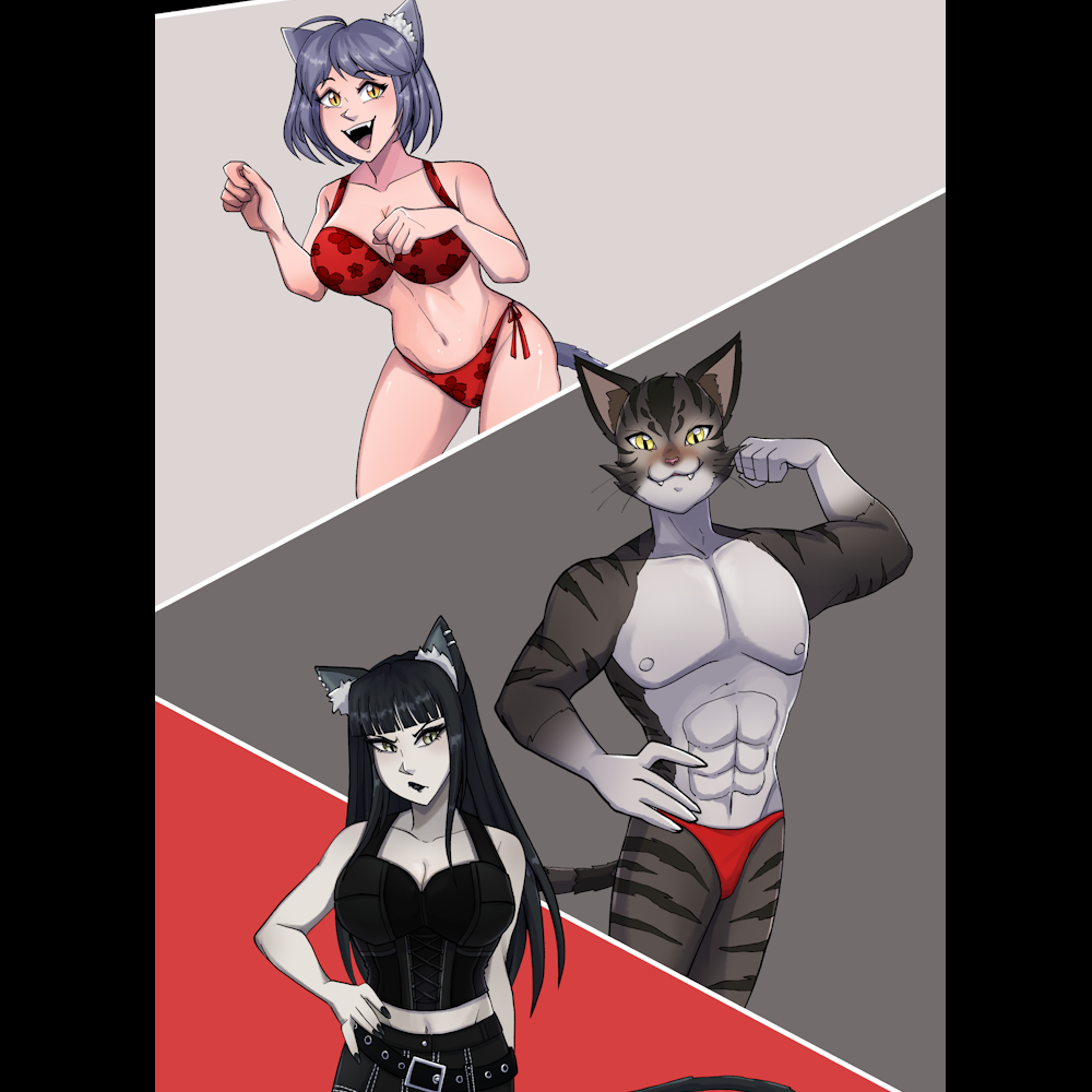 I thought it'd be super neat to have a wallpaper featuring my characters. There's desktop versions and a vertical version for phones. Enjoy!